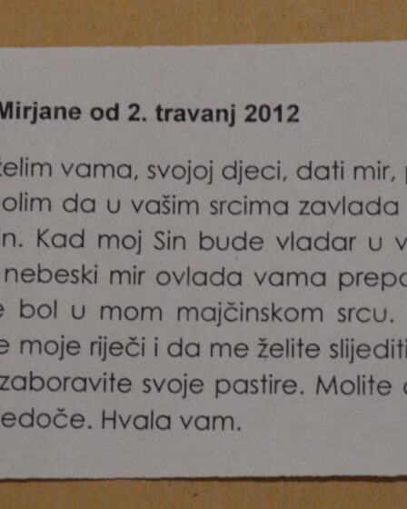 Carissimi,nella semplicità vi trascrivo quanto ho appena registrato sul PodBrdo pochi minuti fa dalla voce di Krizan Brekalo che traduceva in tempo reale Ivan Dragicevic: <<Desidero descrivere anche a voi, avvicinarvi ciò che è più importante dell’incontro di questa sera. Stasera la Madonna è venuta a noi molto gioiosa e felice, all’inizio ha salutato tutti …